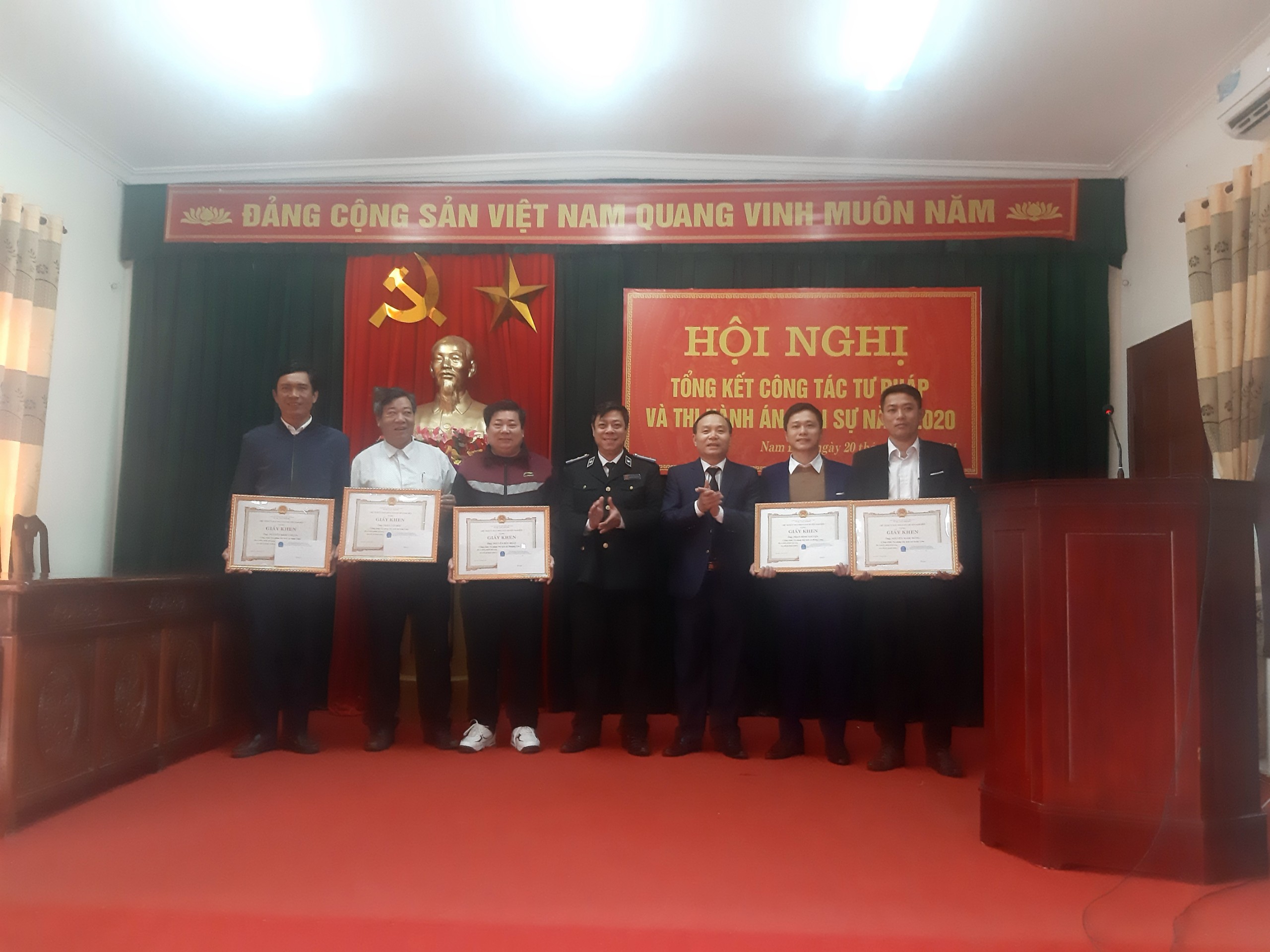 Tại hội nghị, UBND huyện Nam Đàn đã trao tặng giấy khen cho 05 tập thể và 05 cá nhân có nhiều thành tích trong công tác thi hành án dân sự năm 2020.