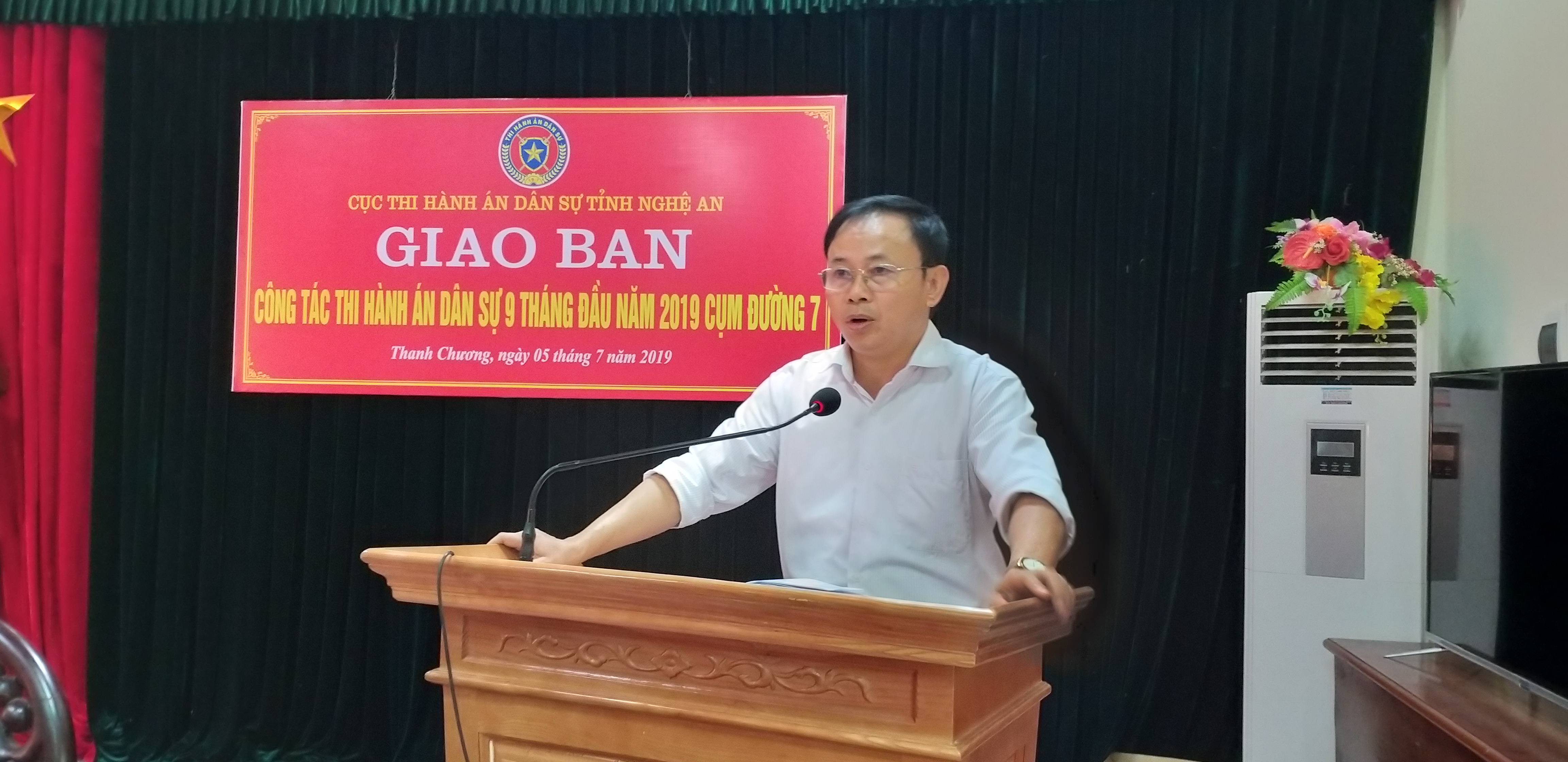 Trong ba ngày 05, 08 và 09/7/2019, Cục Thi hành án dân sự tỉnh Nghệ An đã tổ chức Hội nghị giao ban Quý III/2019 tại ba Cụm (Cụm đường 1 tại huyện Quỳnh Lưu, Cụm đường 7 tại huyện Thanh Chương và Cụm đường 48 tại huyện Quỳ Châu) nhằm đánh giá tình hình, kết quả công tác Thi hành án dân sự, hành chính 9 tháng, tổng kết phong trào thi đua cao điểm (đợt 1) và triển khai nhiệm vụ 3 tháng cuối năm 2019; tham dự có Lãnh đạo Cục, Trưởng phòng chuyên môn, Chi cục trưởng, cán bộ công chức và đại diện lãnh đạo UBND, Trưởng Ban chỉ đạo Thi hành án dân sự huyện nơi đăng cai Hội nghị.