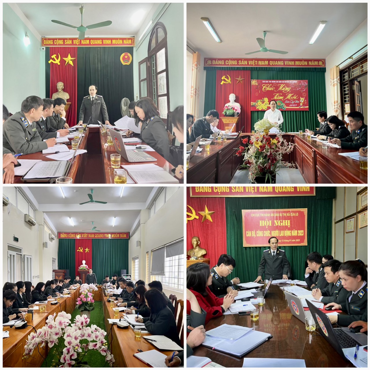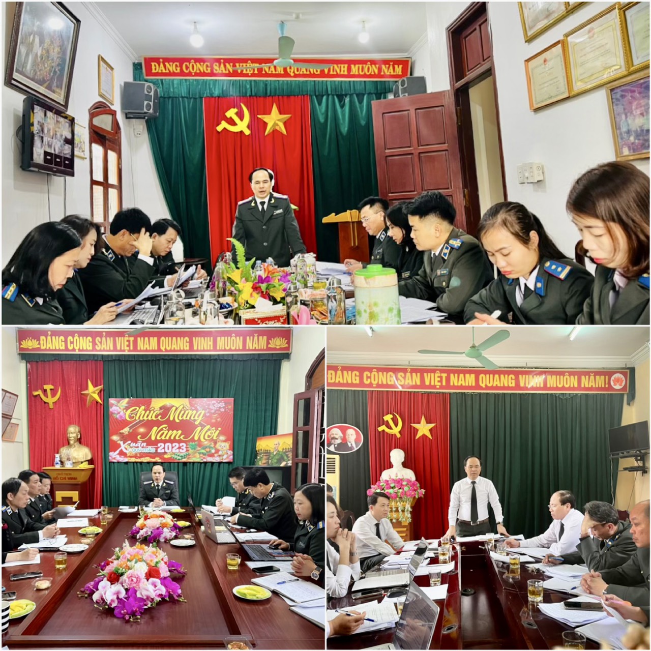 3. Tập thể lãnh đạo Cục THADS tỉnh và đại diện các Phòng chuyên môn tổ chức làm việc trực tiếp với 10 Chi cục THADS cấp huyện có số lượng việc, tiền lớn trên địa bàn (Vinh, Cửa lò, Nghi Lộc, Diễn Châu, Quỳnh Lưu, Yên Thành, Đô Lương, Anh Sơn, Thái Hòa, Quỳ Hợp) để quán triệt việc thực hiện chỉ tiêu, nhiệm vụ năm 2023 và phừa ngừa, phòng chống tiêu cực, tham nhũng trong hoạt động THADS. Tại các cuộc làm việc sau khi nghe các đơn vị báo cáo kết quả thực hiện chỉ tiêu nhiệm vụ năm 2023, báo cáo kết quả thực hiện công tác chủ động phòng ngừa, xử lý nghiêm sai phạm, tiêu cực, tham nhũng trong công tác THADS tại đơn vị và phát biểu ý kiến trao đổi của các thành viên tham dự, đồng chí Phạm Quốc Nam, Cục trưởng kết luận trên 02 nhóm nhiệm vụ chính: nhóm nhiệm vụ để hoàn thành chỉ tiêu nhiệm vụ được giao năm 2023 và nhóm các giải pháp tiếp tục chủ động chủ động phòng ngừa, xử lý nghiêm sai phạm, tiêu cực, tham nhũng trong công tác THADS tại đơn vị. Trong đó đặc biệt nhấn mạnh đến nhóm các giải pháp tiếp tục chủ động chủ động phòng ngừa, xử lý nghiêm sai phạm, tiêu cực, tham nhũng trong công tác THADS tại đơn vị nhằm chủ động phòng ngừa từ sớm, từ xa các sai phạm, tiêu cực, tham nhũng của cán bộ, công chức trong hoạt động thi hành án dân sự với phương châm phòng ngừa chặt chẽ, ngăn chặn từ gốc, phát hiện từ sớm, xử lý từ đầu, không để vi phạm nhỏ tích tụ thành sai phạm lớn tại cơ quan, đơn vị.