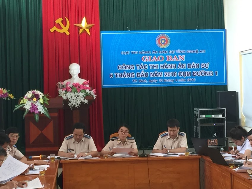 hực hiện Kế hoạch công tác năm 2018 của Cục Thi hành án dân sự tỉnh Nghệ An, từ ngày 10 - 12/4/2018, Cục Thi hành án dân sự tỉnh đã tổ chức Hội nghị giao ban Quý II nhằm đánh giá sơ kết công tác thi hành án dân sự 6 tháng đầu năm và triển khai nhiệm vụ 6 tháng cuối năm 2018. Hội nghị được tổ chức tại 3 Cụm: Cụm đường 1 tại thành phố Vinh, Cụm đường 7 tại huyện Tương Dương và Cụm đường 48 tại huyện Quỳ Hợp.