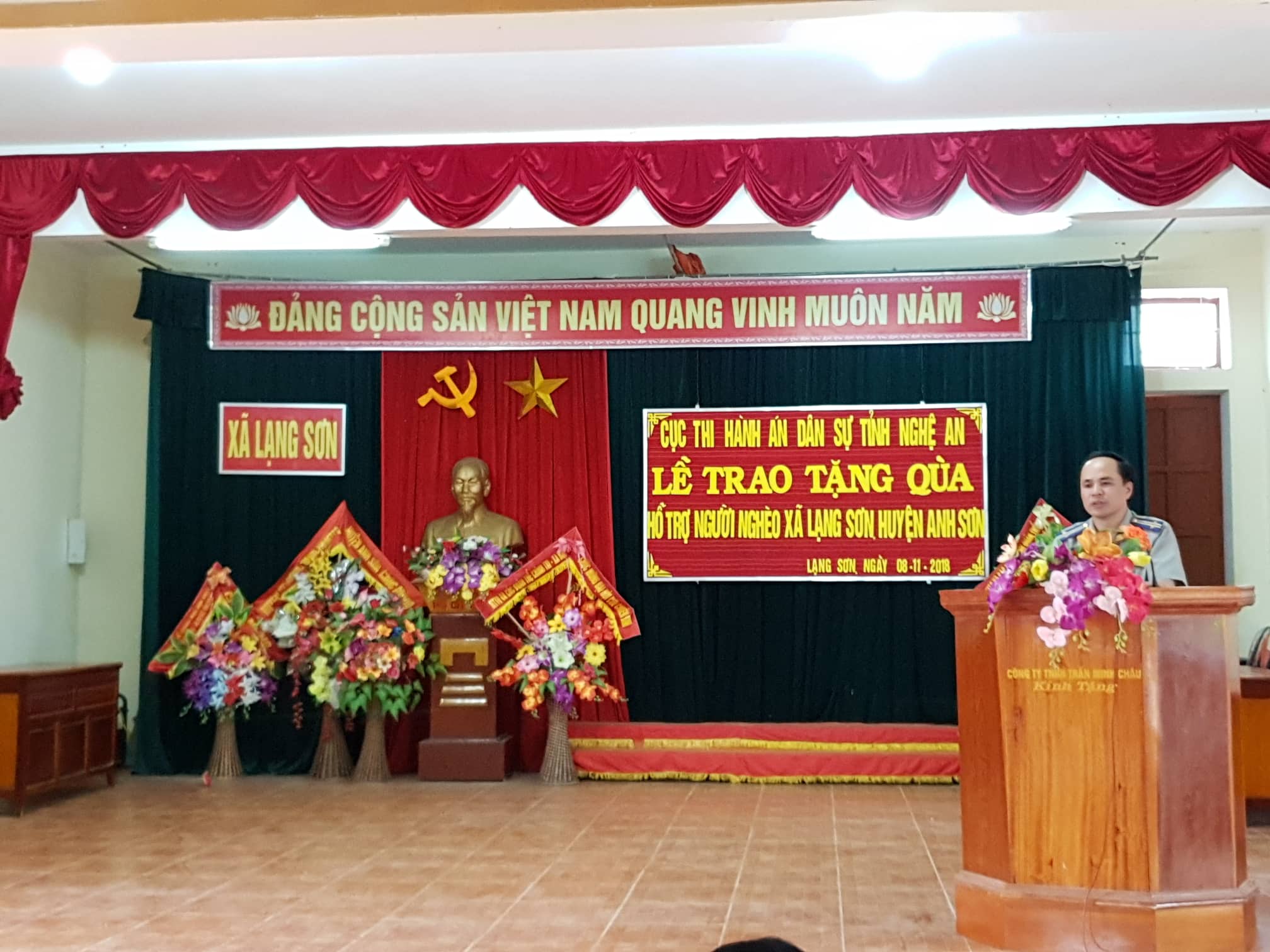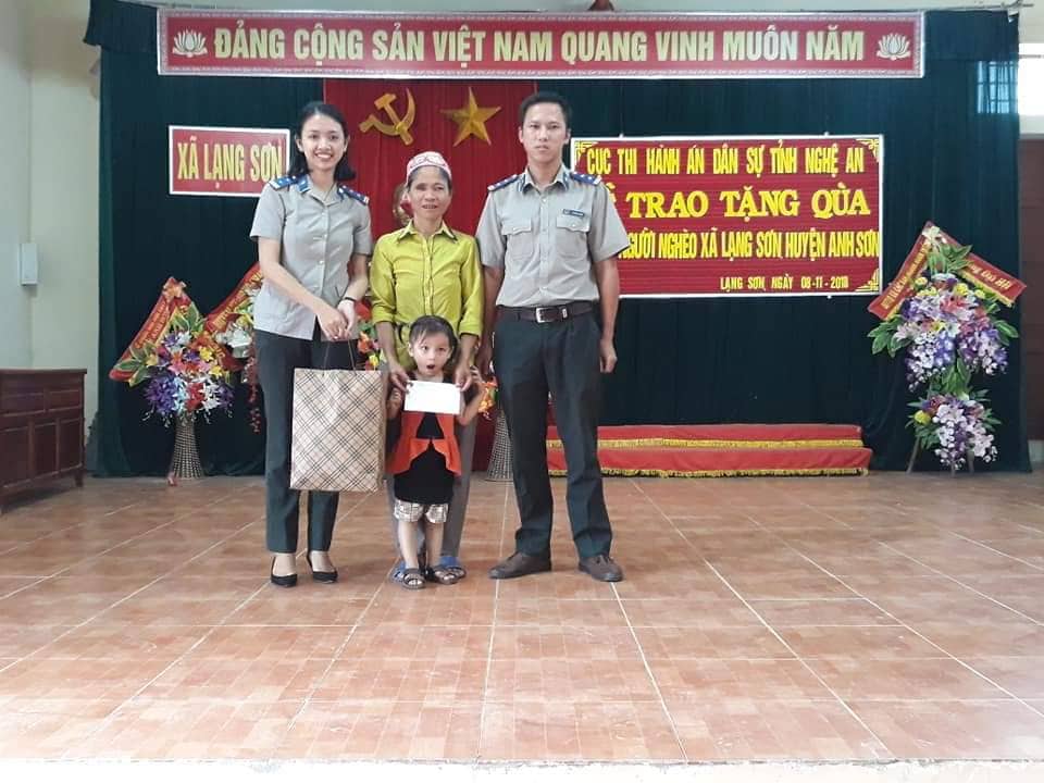 Tiếp tục thực hiện phân công của UBND tỉnh Nghệ An tại Quyết định số 3550/QĐ-UBND ngày 04/8/2017 về việc phân công các cơ quan, đơn vị nhận giúp đỡ các xã nghèo vùng miền Tây tỉnh Nghệ An, ngày 8/11/2018, Cục Thi hành án dân sự tỉnh Nghệ An phối hợp với Cấp ủy, chính quyền xã Lạng Sơn, huyện Anh Sơn tổ chức trao tặng dê sinh sản cho các hộ nghèo trên địa bàn xã Lạng Sơn.