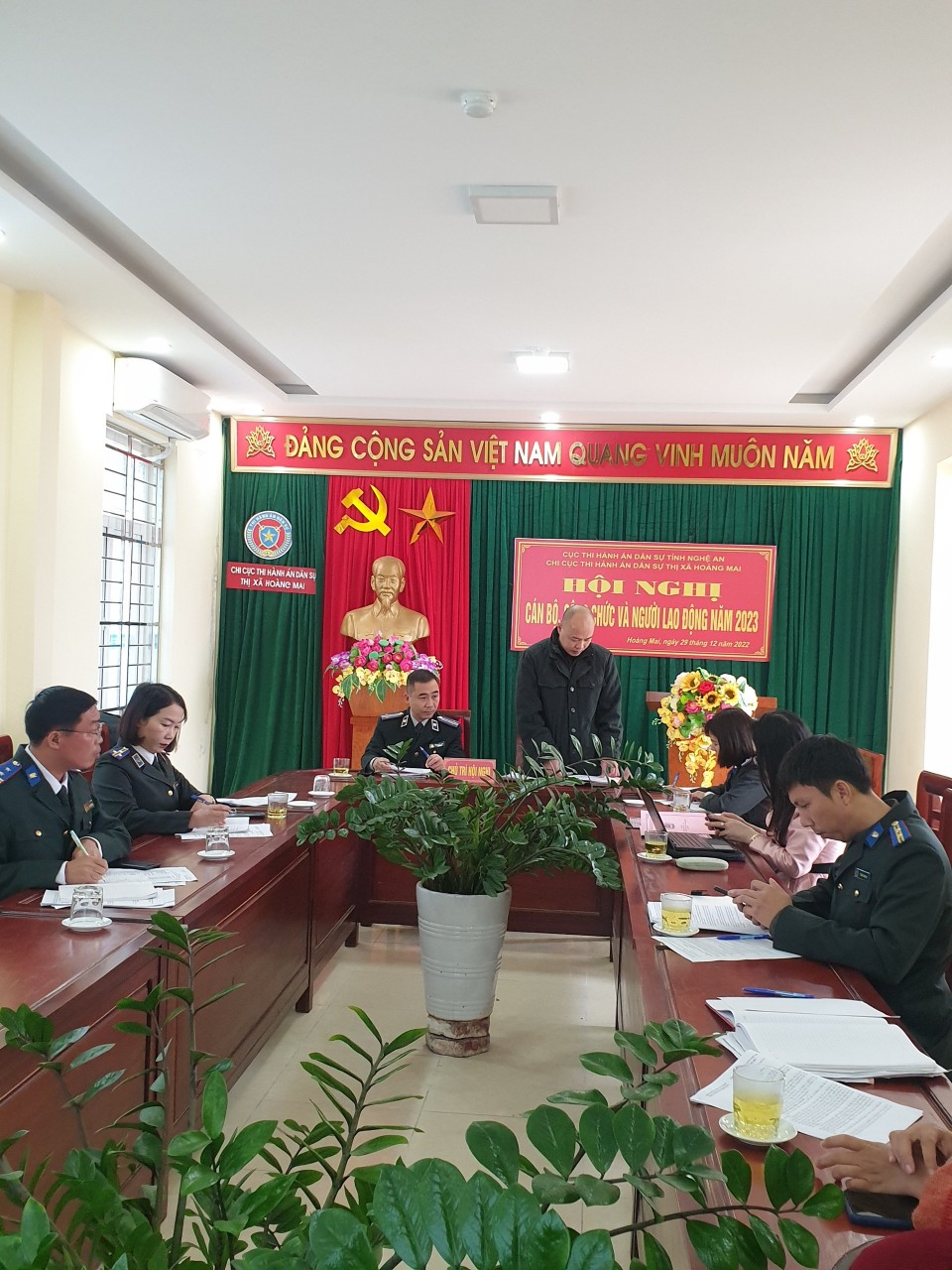 Được sự nhất trí của Chi bộ, lãnh đạo Chi cục THADS thị xã Hoàng Mai. Chiều 29/12/2022 Chi cục THADS thị xã Hoàng Mai tổ chức Hội nghị CBCC và người lao động năm 2023. Tham dự Hội nghị có đồng chí Trần Thị Bích - Ủy viên BCH Đảng bộ thị xã, Chủ tịch LĐLĐ; đồng chí Nguyễn Hữu Lâm - Bí thư chi bộ, Chi cục trưởng Chi cục THADS thị xã Hoàng Mai.