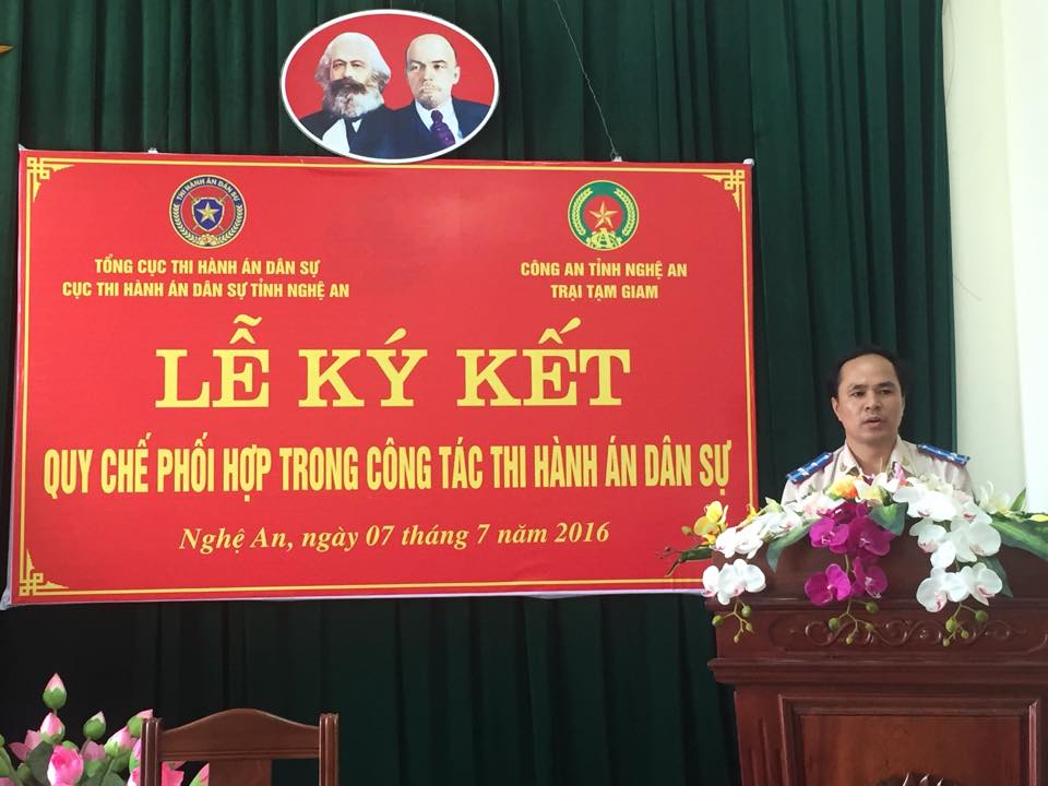 Sáng 7/7/2016, tại Trại tạm giam Công an tỉnh Nghệ An, Cục Thi hành án dân sự tỉnh và Trại tạm giam Công an tỉnh đã tiến hành tổ chức Lễ ký kết Quy chế phối hợp trong công tác thi hành án dân sự.