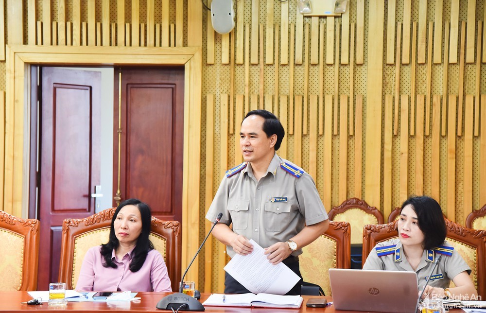 Tham dự cuộc họp, đồng chí Phạm Quốc Nam, Cục trưởng, Cục THADS tỉnh Nghệ An đã báo cáo những kết quả đạt được trong gần 05 năm thực hiện Nghị quyết 42/2017/QH ngày 21/6/2017 của Quốc hội và tình hình thi hành án các vụ việc có liên quan đến việc xử lý tàu cá theo Nghị định số 67/2014 NĐ- CP ngày 7/7/2014 của Chính phủ trên địa bàn tỉnh Nghệ An. Đồng thời trên cơ sở các khó khăn, vướng mắc trong quá trình tổ chức thi hành án, Cục trưởng Cục THADS tỉnh đã mạnh dạn kiến nghị các giải pháp có tính căn cơ về sự cần thiết phải sửa đổi, điều chỉnh một số nội dung về mặt thể chế, chính sách cũng như tăng cường sự quan tâm của cấp ủy, chính quyền địa phương và vai trò, trách nhiệm của các cơ quan, ban ngành, đơn vị có liên quan trong mối quan hệ phối hợp với cơ quan THADS về công tác THADS nói chung và thi hành các vụ việc theo Nghị Quyết 42 và Nghị định 67 nói riêng.