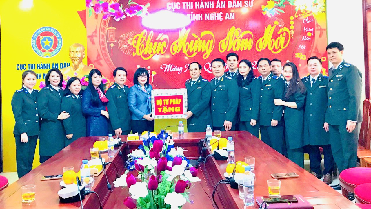 Chiều ngày 12/02/2022, đoàn công tác của Bộ Tư pháp do đồng chí Đặng Hoàng Oanh - Uỷ viên Ban cán sự Đảng Bộ Tư pháp, Thử trưởng Bộ Tư pháp làm trưởng đoàn đã có buổi thăm tặng quà và chúc Tết Cục Thi hành án dân sự tỉnh Nghệ An.