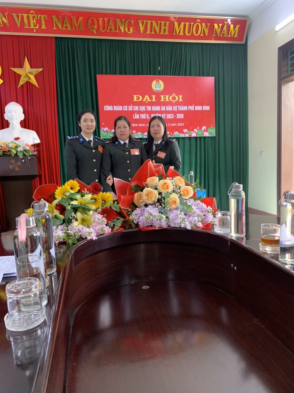 Sau thời gian làm việc khẩn trương, nghiêm túc với tinh thần trách nhiệm, hiệu quả, Đại hội Công đoàn cơ sở Chi cục THADS thành phố Ninh đã thành công tốt đẹp. Đại hội đã bầu ra Ban Chấp hành Công đoàn Chi cục THADS thành phố Ninh Bình lần thứ II, nhiệm kỳ 2023-2028, gồm 03 đồng chí và bầu 01 đại biểu chính thức dự Đại hội Công đoàn thành phố.