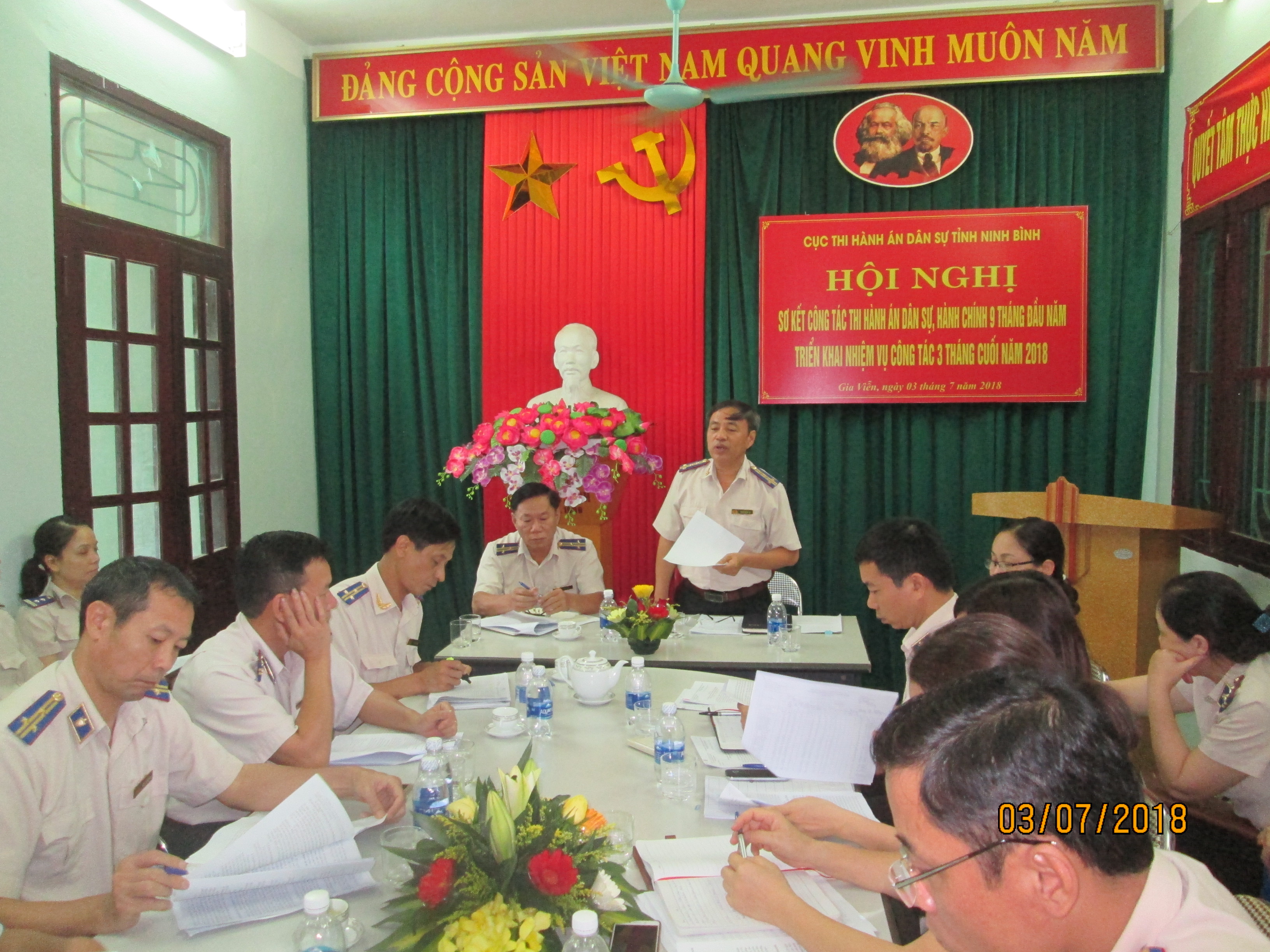 Sáng ngày 3/7/2018, Cục thi hành án dân sự (THADS) tỉnh Ninh Bình đã tổ chức hội nghị sơ kết công tác thi hành án dân sự hành chính 9 tháng đầu năm 2018, tại Chi cục thi hành án dân sự huyện Gia Viễn. Chủ trì hội nghị, đồng chí Phạm Xuân Tuý Cục trưởng Cục THADS tỉnh Ninh Bình. Tham dự hội nghị có các đồng chí Phó cục trưởng Lãnh đạo các phòng chuyên môn thuộc Cục, Lãnh đạo Chi cục THADS huyện, thành phố trực thuộc.