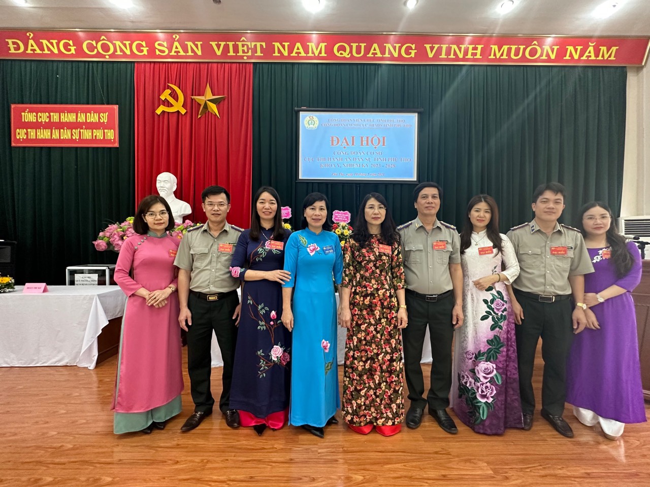 Chiều ngày 10 tháng 5 năm 2023, Công đoàn cơ sở Cục Thi hành án dân sự tỉnh Phú Thọ long trọng tổ chức Đại hội lần thứ V, nhiệm kỳ 2023-2028. Dự và chỉ đạo Đại hội có đồng chí Nguyễn Thị Thu Chung – Bí thư Chi bộ, Cục trưởng Cục Thi hành án dân sự tỉnh; đồng chí Phạm Diệu Linh và đồng chí Ngô Mạnh Cường – Phó Cục trưởng Cục Thi hành án dân sự tỉnh; đồng chí Nhâm Thị Hồng Nga – Phó Chủ tịch Công đoàn Viên chức tỉnh.