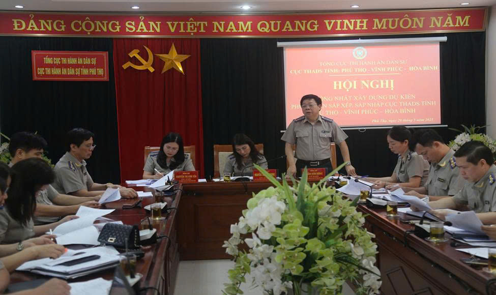 Ngày 26/5/2025, tại trụ sở Cục Thi hành án dân sự Phú Thọ, ba đơn vị: Cục Thi hành án dân sự (THADS) Phú Thọ, Hòa Bình và Vĩnh Phúc đã tổ chức Hội nghị xây dựng dự kiến phương án sắp xếp, sáp nhập các đơn vị theo chủ trương của Đảng, Chính phủ và chỉ đạo Bộ Tư pháp và Tổng cục Thi hành án dân sự (THADS) về việc sắp xếp tổ chức bộ máy theo hướng tinh gọn, hoạt động hiệu lực, hiệu quả.