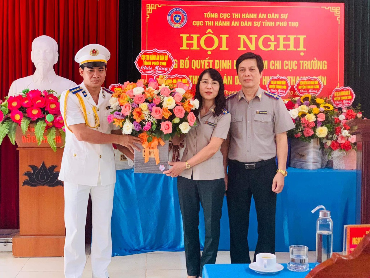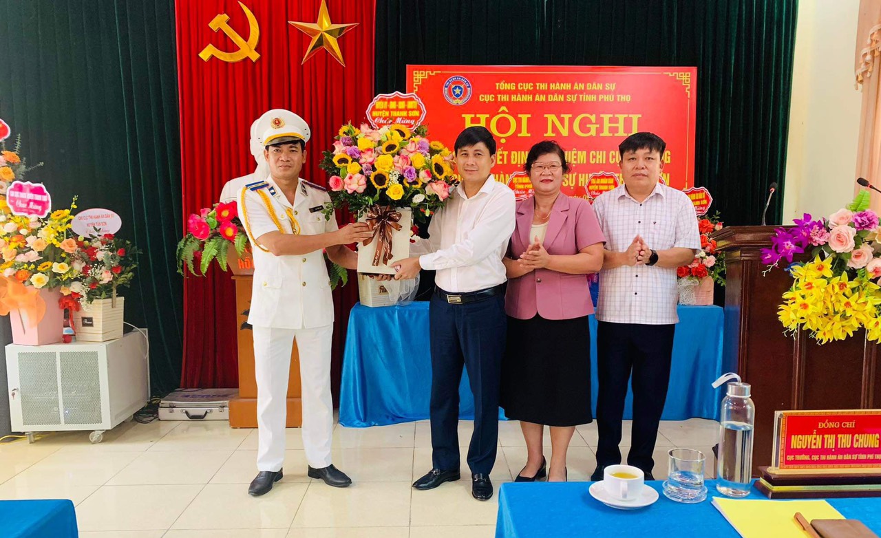 Thực hiện chủ trương về công tác cán bộ của Tổng cục trưởng Tổng cục Thi hành án dân sự, ngày 09/10/2023, Cục Thi hành án dân sự (THADS) tỉnh Phú Thọ tổ chức các Hội nghị công bố Quyết định bổ nhiệm Chi cục trưởng Chi cục THADS huyện Tam Nông và Thanh Sơn. Chủ trì hội nghị có đồng chí Nguyễn Thị Thu Chung, Bí thư Chi Bộ, Cục trưởng Cục THADS tỉnh Phú Thọ. Tham dự hội nghị, về phía huyện Tam Nông có đồng chí Vương Đức Thuỷ, Tỉnh uỷ viên, Bí thư Huyện uỷ cùng các đồng chí là Lãnh đạo Huyện uỷ, HĐND, UBND, lãnh đạo các cơ quan trong Khối Nội chính, các phòng, ban, đơn vị của Huyện uỷ, UBND huyện; về phía huyện Thanh Sơn có đồng chí Đoàn Quang Tuấn, Phó Bí thư Huyện uỷ, Chủ tịch UBND huyện, Trưởng Ban Chỉ đạo THADS huyện cùng các đồng chí là Lãnh đạo Huyện uỷ, HĐND, UBND, lãnh đạo các cơ quan trong Khối Nội chính, các phòng, ban, đơn vị của Huyện uỷ, UBND huyện và các cơ quan hữu quan phối hợp hoạt động với cơ quan THADS 02 huyện Tam Nông và Thanh Sơn.