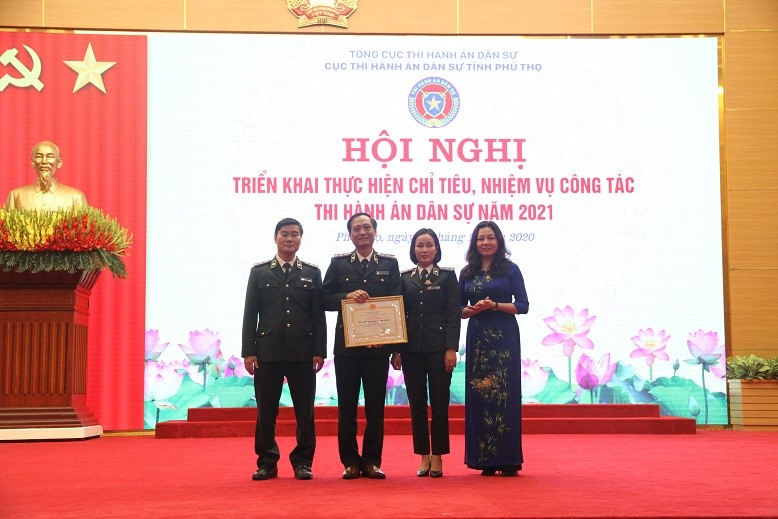 | Đ/c Trần Thị Phương Hoa, Phó Tổng cục Trưởng, Tổng cục THADS trao tặng giấy khen của Tổng cục THADS cho Chi Cục THADS huyện Hạ Hòa đã có thành tích xuất sắc chào mừng đợt thi hành án cao điểm chào mừng 74 năm ngày truyền thống THADS. | Các cá nhân và tập thể có thành tích xuất sắc trong công tác THADS năm 2020 |