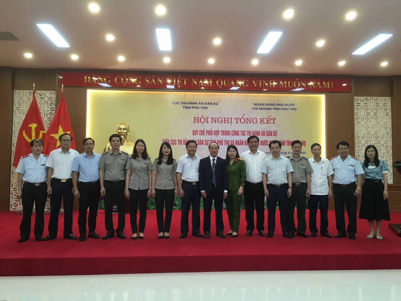 Chiều ngày 01/6/2022, Cục Thi hành án dân sự tỉnh Phú Thọ và Ngân hàng nhà nước chi nhánh tỉnh Phú Thọ tổ chức Hội nghị tổng kết Quy chế số 47/2015/QCPH ngày 27/3/2015 về trao đổi thông tin và chỉ đạo hoạt động thi hành án dân sự liên quan đến hoạt động tín dụng, ngân hàng.