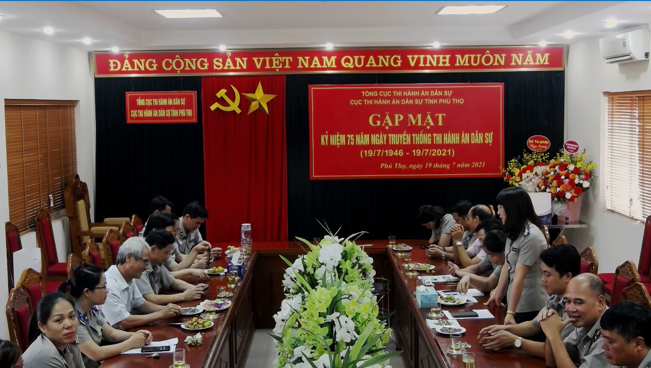 Nhân dịp 75 năm ngày truyền thống THADS (19/7/1946 – 19/7/2021). Chiều ngày 19/7/2021, Cục THADS tỉnh Phú Thọ đã tổ chức buổi gặp mặt công chức, người lao động Cục THADS. Tham dự buổi gặp mặt có đồng chí Nguyễn Thị Thu Chung, Cục trưởng Cục THADS tỉnh Phú Thọ; đồng chí Nguyễn Đức Nghĩa – Nguyên Cục trưởng Cục THADS tỉnh; các đồng chí Phó cục trưởng cục THADS tỉnh; Đại diện Ban liên lạc hưu trí THADS tỉnh Phú Thọ cùng toàn thể công chức, người lao động thuộc Cục.