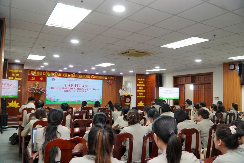 Sáng ngày 14/6/2025, tại hội trường lầu 11 trụ sở Cục THADS TP.HCM, Cục đã tổ chức Hội nghị tập huấn trực tiếp về nghiệp vụ triển khai sử dụng phần mềm Biên lai điện tử. Hội nghị có sự tham dự của gần 100 Kế toán trưởng, Kế toán phụ trách nghiệp vụ; Thủ quỹ và công chức phụ trách Công nghệ thông tin đến từ Cục THADS TP.HCM và các đơn vị bạn gồm: Bình Dương, Bà Rịa – Vũng Tàu. Đồng chí Đỗ Phong Hóa – Phó Cục trưởng Cục THADS TP.HCM chủ trì buổi tập huấn, cùng đại diện Lãnh đạo các phòng, đơn vị chuyên môn và đội ngũ kế toán, thủ quỹ