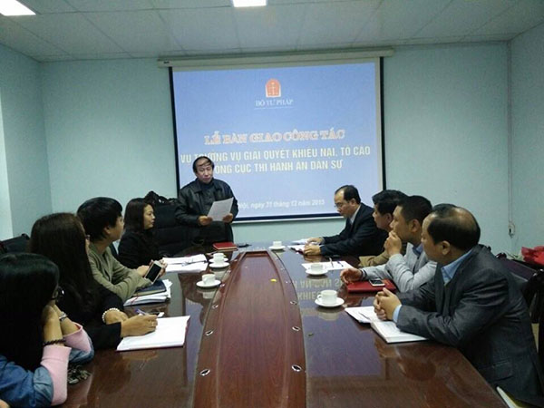 Thực hiện các quyết định của Bộ trưởng Bộ Tư pháp về việc điều động và bổ nhiệm lãnh đạo cấp vụ của Tổng cục Thi hành án dân sự, đồng chí Trần Thị Phương Hoa, Quyền Vụ trưởng Vụ Giải quyết khiếu nại, tố cáo được điều động, bổ nhiệm giữ chức vụ Vụ trưởng Vụ Tổ chức cán bộ Tổng cục Thi hành án dân sự và đồng chí Nguyễn Thắng Lợi, Phó Chánh Thanh tra Bộ Tư pháp được điều động, bổ nhiệm giữ chức vụ Vụ trưởng Vụ Giải quyết khiếu nại, tố cáo Tổng cục Thi hành án dân sự, ngày 31/12/2015, Vụ Giải quyết khiếu nại, tố cáo Tổng cục Thi hành án dân sự đã tổ chức bàn giao công tác Lãnh đạo giữa đồng chí Trần Thị Phương Hoa và đồng chí Nguyễn Thắng Lợi.