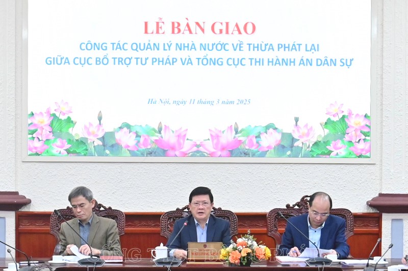 Ngày 11/3, Thứ trưởng Bộ Tư pháp Mai Lương Khôi đã dự Lễ bàn giao công tác quản lý nhà nước về thừa phát lại giữa Cục Bổ trợ tư pháp và Tổng cục Thi hành án dân sự.