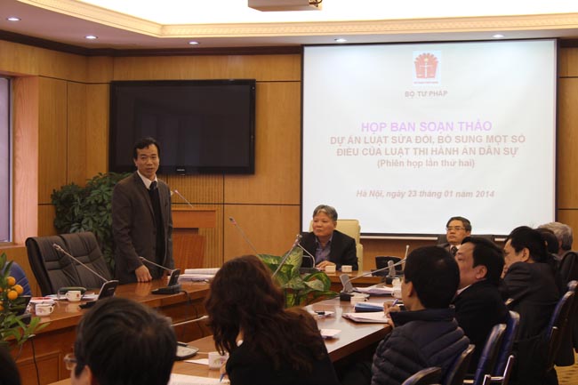 Ngày 23/01/2014, tại trụ sở cơ quan Bộ Tư pháp, Ban soạn thảo Dự án Luật sửa đổi, bổ sung một số điều của Luật Thi hành án dân sự đã tổ chức phiên họp thứ hai, dưới sự chủ trì của Đồng chí Hà Hùng Cường - Ủy viên Trung ương Đảng, Bộ trưởng Bộ Tư pháp, Trưởng Ban soạn thảo.