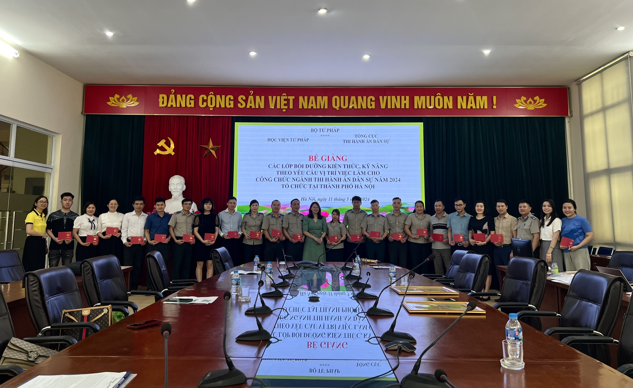 Sáng ngày 11/5/2024, Học viện Tư pháp tổ chức bế giảng các lớp bồi dưỡng kiến thức, kỹ năng theo yêu cầu vị trí việc làm cho công chức ngành Thi hành án dân sự tổ chức tại Thành phố Hà Nội.