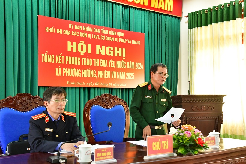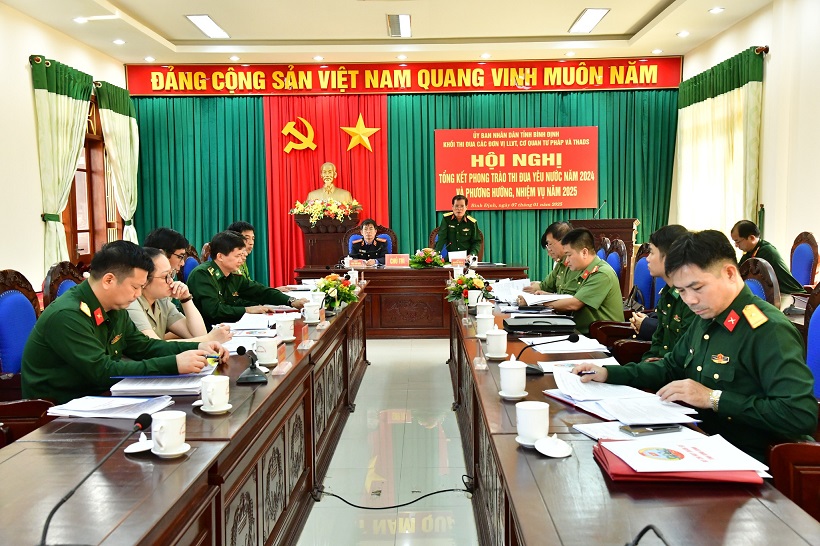 Theo báo cáo tại hội nghị, trong năm 2024, với quyết tâm ra sức phấn đấu thi đua thực hiện thắng lợi các nhiệm vụ chính trị của mỗi đơn vị, các mục tiêu, chỉ tiêu phát triển kinh tế - xã hội, đảm bảo quốc phòng, an ninh của tỉnh, ngay từ đầu năm, Khối thi đua các LLVT, TP, THADS đã ban hành kế hoạch phát động phong trào thi đua, xây dựng nội dung, tiêu chí thi đua và tổ chức ký kết giao ước thi đua yêu nước; chủ động bám sát những nhiệm vụ công tác trọng tâm, đề ra các chỉ tiêu, nội dung thi đua cụ thể, phù hợp với chức năng, nhiệm vụ của từng ngành, cơ quan, đơn vị, với những khẩu hiệu hành động cụ thể, thiết thực. Các cơ quan, đơn vị trong Khối kịp thời chỉ đạo, đề ra nhiều biện pháp, giải pháp tổ chức thực hiện kế hoạch công tác của từng ngành; vận dụng, lồng ghép phong trào thi đua yêu nước của tỉnh, gắn với các phong trào thi đua theo ngành dọc; tổ chức tốt các đợt thi đua chào mừng các ngày Lễ, Tết, các sự kiện nổi bật, quan trọng trong năm, nhất là tiếp tục thi đua lập thành tích xuất sắc trong việc thực hiện Nghị quyết Đại hội XIII của Đảng, Nghị quyết Đại hội Đảng bộ tỉnh lần thứ XX. Kịp thời quán triệt, triển khai, xây dựng kế hoạch thực hiện các nghị quyết, quy định của Đảng khoá XIII, nhất là các qui định có liên quan đến chức năng, nhiệm vụ của mỗi đơn vị, như: Quy định số 132-QĐ/TW, ngày 27/10/2023 của Bộ Chính trị về kiểm soát quyền lực, phòng, chống tham nhũng, tiêu cực trong hoạt động điều tra, truy tố, xét xử, thi hành án; Quy định số 144-QĐ/TW ngày 09/5/2024 của Bộ Chính trị về chuẩn mực đạo đức cách mạng của cán bộ, đảng viên trong giai đoạn mới; Quy định số 183-QĐ/TW, ngày 18/9/2024 của Bộ Chính trị về bảo vệ cơ quan, tổ chức, người thi hành công vụ trong hoạt động điều tra, truy tố, xét xử, thi hành án. Tổ chức quán triệt sâu sắc trong mỗi đơn vị Chỉ thị số 35-CT/TW, ngày 14/6/2024 của Bộ Chính trị về đại hội đảng bộ các cấp tiến tới Đại hội đại biểu toàn quốc lần thứ XIV của Đảng và các Kế hoạch hướng dẫn của Ban Thường vụ Tỉnh ủy. Thường xuyên quán triệt nội dung Cuốn sách của Tổng Bí thư Nguyễn Phú Trọng về “Kiên quyết, kiên trì đấu tranh phòng, chống tham nhũng, tiêu cực, góp phần xây dựng Đảng và Nhà nước ta ngày càng trong sạch, vững mạnh”. Xây dựng kế hoạch và tổ chức học tập, quán triệt Chuyên đề năm 2024-2025 của Đảng bộ tỉnh về học tập và làm theo tư tưởng, đạo đức, phong cách Hồ Chí Minh “Thi đua yêu nước, quyết tâm thực hiện thắng lợi Nghị quyết Đại hội Đảng các cấp, phấn đấu xây dựng Bình Ðịnh trở thành tỉnh phát triển thuộc nhóm dẫn đầu khu vực miền Trung”. Thông qua các phong trào thi đua đã tạo sự chuyển biến, nâng cao nhận thức cho cán bộ, chiến sĩ, công chức, viên chức, người lao động, đề cao tính chủ động, kỷ cương, trách nhiệm và hiệu quả trong công việc. Song song với việc tổ chức tốt phong trào thi đua yêu nước, các cơ quan, đơn vị trong Khối tiếp tục thực hiện có hiệu quả Chỉ thị số 08-CT/UBND ngày 22/4/2024 của UBND tỉnh về phát động phong trào thi đua thực hiện nhiệm vụ phát triển kinh tế - xã hội năm 2024; các văn bản hướng dẫn về công tác thi đua, khen thưởng của Chính phủ, bộ, ngành, của Tỉnh uỷ, UBND tỉnh.