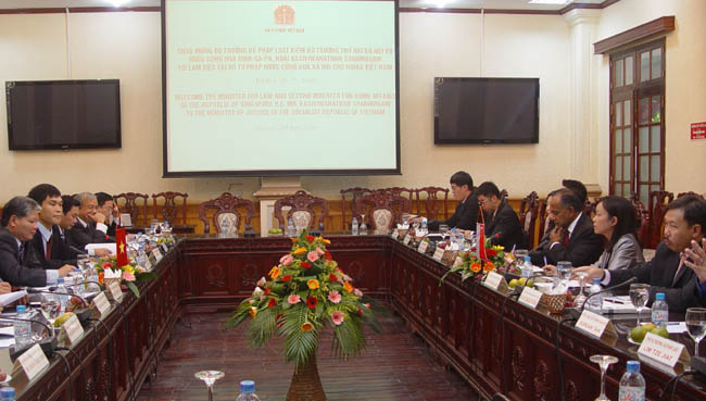 Bộ trưởng Bộ Pháp luật Singapore cảm ơn sự chia sẻ của Bộ trưởng Hà Hùng Cường đã giúp ngài hiểu rõ hơn những khác biệt về nhiệm vụ, phạm vi và mức độ hoạt động của cơ quan tư pháp hai nước. Kinh nghiệm của Singapore cho thấy rằng: hệ thống pháp luật rõ ràng là yếu tố quan trọng để thu hút đầu tư ngước ngoài, góp phần thúc đẩy tăng trưởng kinh tế đất nước, và Việt Nam cũng không nằm ngoài quy luật này. Singapore luôn luôn cởi mở, sẵn sàng hợp tác với Việt Nam về vấn đề này. Cụ thể, ngài Bộ trưởng K.Shanmugam nêu một số ý kiến: tăng cường mối tương tác về con người giữa hai nước để hiểu nhau hơn, chia sẻ tri thức dễ dàng hơn; chia sẻ kinh nghiệm trong lĩnh vực chuyển đổi kinh tế. Tuy nhiên, ngài lưu ý rằng việc học hỏi kinh nghiệm phải có tính chọn lọc, biến cái của người khác thành của mình và phải biết bỏ qua những yếu tố không phù hợp.
