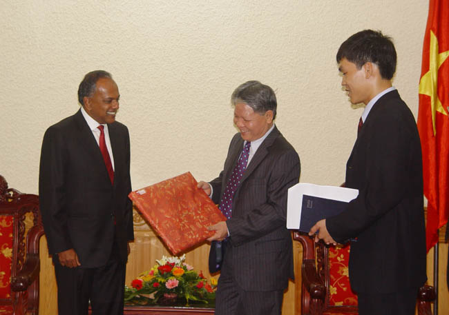 Bộ trưởng Bộ Tư pháp Hà Hùng Cường tiếp Bộ trưởng Bộ Pháp luật Singapore K.Shanmugam