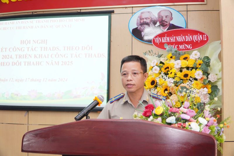 Chiều 17-12, Chi cục Thi hành án dân sự (THADS) Quận 12 tổ chức Hội nghị triển khai công tác năm 2025, dự và chỉ đạo Hội nghị có đồng chí Trần Phương Hồng, Phó cục trưởng, Cục THADS Thành phố, đồng chí Nguyễn Văn Đức – Phó Bí thư Quận ủy – Chủ tịch UBND Quận 12 – Trưởng BCĐ THADS Quận 12, đồng chí Nguyễn Thị Ngọc Duyên - Ủy viên Ban Thường vụ - Chủ nhiệm UBKT Quận ủy Quận 12 và tập thể lãnh đạo, công chức Chi cục THADS Quận 12.