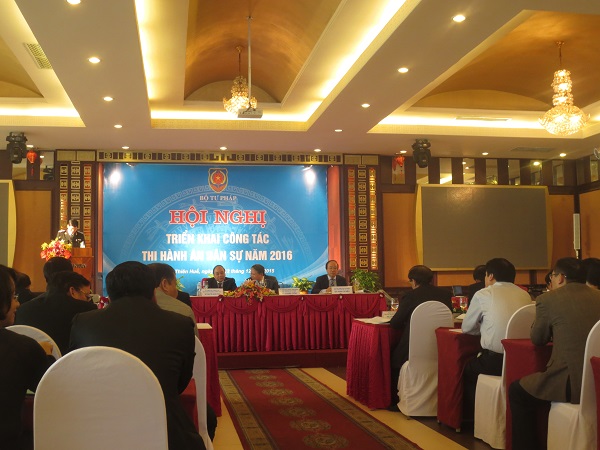 Trong hai ngày 11 và 12 tháng 12 năm 2015, Bộ Tư pháp đã tổ chức Hộ nghị triển khai công tác thi hành án dân sự năm 2016. Đồng chí Nguyễn Xuân Phúc, Ủy viên Bộ Chính trị, Phó Thủ tướng Chính phủ đã đến dự và chỉ đạo Hội nghị. Hội nghị đã nghe và thảo luận dự thảo Báo cáo tổng kết công tác năm 2015 và nhiệm kỳ 2011-2015; phương hướng, nhiệm vụ, giải pháp chủ yếu năm 2016 và định hướng nhiệm kỳ 2016-2021; Chương trình trọng tâm công tác thi hành án dân sự năm 2016; quán triệt chỉ tiêu, nhiệm vụ thi hành án dân sự năm 2016 theo Quyết định số 2167/QĐ-BTP ngày 09/12/2015 của Bộ trưởng Bộ Tư pháp và Quyết định số 940/QĐ-TCTHADS ngày 09/12/2015 của Tổng cục trưởng Tổng cục Thi hành án dân sự về việc giao chỉ tiêu, nhiệm vụ cho các cơ quan thi hành án dân sự địa phương năm 2016.