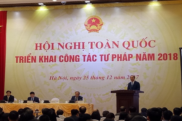 Thay mặt Lãnh đạo Bộ Tư pháp, đồng chí Phan Chí Hiếu Thứ trưởng Bộ Tư pháp trình bày báo cáo công tác tư pháp năm 2017 và phương hướng, nhiệm vụ, giả pháp công tác năm 2018. Theo đó đánh giá công tác thi hành án dân sự tiếp tục nhận được sự quan tâm lãnh đạo, chỉ đạo sát sao của các đồng chí Lãnh đạo Đảng, Nhà nước và đạt được nhiều kết quả tích cực.