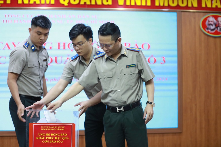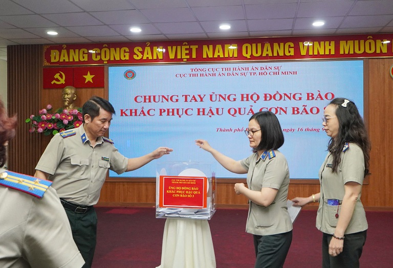Thời gian qua, do ảnh hưởng của cơn bão số 3, các tỉnh, thành phố phía Bắc bị thiệt hại nặng nề. Bão lũ làm nhiều người chết và mất tích; nhiều ngôi nhà bị ngập, sập đổ, hư hỏng, nhiều hecta lúa, hoa màu bị ngập, vùi lấp; nhiều hecta thủy sản bị thiệt hại; nhiều gia súc, gia cầm bị chết, cuốn trôi; nhiều con đường, nhiều cây cầu bị hỏng, xuống cấp. Thực hiện Lời kêu gọi của Đoàn Chủ tịch Ủy ban Trung ương Mặt trận Tổ quốc Việt Nam, Cục THADS Thành phố Hồ Chí Minh các cơ quan THADS trên địa bàn thành phố đã phát động quyên góp ủng hộ đồng bào bị thiệt hại do bão lũ gây ra theo văn bản của các cấp, ngành Trung ương và địa phương, mỗi công chức người lao động đều thực hiện quyên góp ít nhất là 01 ngày lương trở lên.