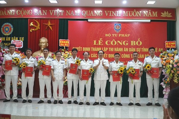 Sáng 6/7, Bộ Tư pháp tổ chức Lễ công bố Quyết định thành lập Thi hành án dân sự (THADS) tỉnh Nghệ An và công bố, trao các quyết định về công tác tổ chức cán bộ theo Đề án “Tiếp tục sắp xếp, tinh gọn bộ máy, hệ thống tổ chức THADS bảo đảm hoạt động hiệu lực, hiệu quả”.