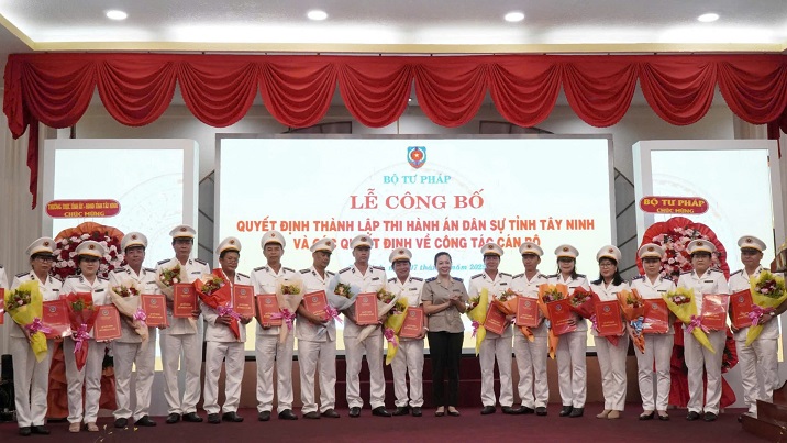 Tại buổi Lễ, bà Trần Thị Phương Hoa, Phó Cục trưởng Cục Quản lý Thi hành án dân sự đã công bố Quyết định của Bộ trưởng Bộ Tư pháp về việc thành lập Thi hành án dân sự tỉnh Tây Ninh và các Quyết định bổ nhiệm Trưởng, Phó trưởng Thi hành án dân sự tỉnh Tây Ninh.