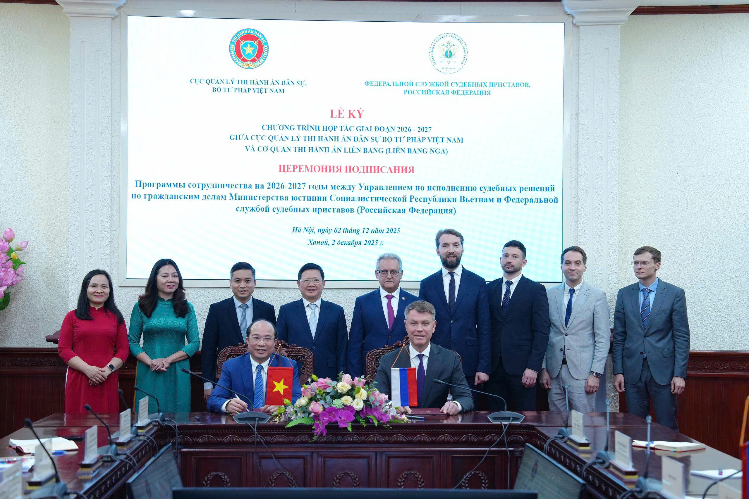 Ngày 02/12, tại Trụ sở Bộ Tư pháp, Lễ ký kết Chương trình hợp tác đã được tổ chức trang trọng, đánh dấu bước phát triển mới trong hợp tác pháp luật – tư pháp giữa Việt Nam và Liên bang Nga.