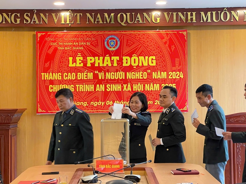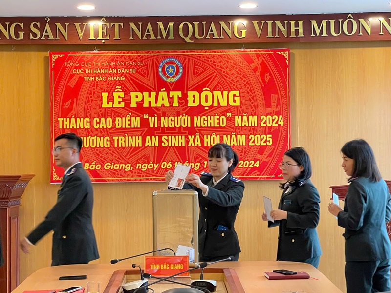 Với mục đích thông qua các hoạt động Tháng cao điểm “Vì người nghèo” nhằm đẩy mạnh công tác tuyên truyền, vận động các tầng lớp Nhân dân nâng cao nhận thức và hành động tích cực tham gia hưởng ứng phong trào thi đua “Vì người nghèo - Không để ai bị bỏ lại phía sau”, “Bắc Giang chung tay vì người nghèo - Không để ai bị bỏ lại phía sau”; vận động các nguồn lực ủng hộ cùng với ngân sách nhà nước hỗ trợ cho hộ nghèo vươn lên thoát nghèo và tặng quà cho hộ nghèo nhân dịp Tết Nguyên đán Ất Tỵ năm 2025. Với tinh thần “tương thân tương ái”, “lá lành đùm lá rách”, mỗi công chức, người lao động Cục THADS tỉnh Bắc Giang đã ủng hộ ít nhất một ngày lương để chung tay chia sẻ, giúp đỡ hộ nghèo, hộ cận nghèo, người có hoàn cảnh đặc biệt khó khăn, người bị thiệt hại do dịch bệnh, thiên tai và người ở vùng sâu, vùng khó khăn.