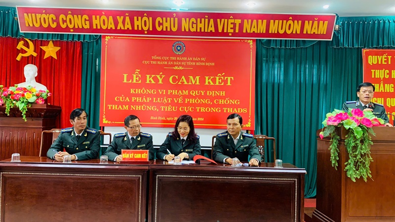 Ngày 20 tháng 11 năm 2024, Cục Thi hành án dân sự tỉnh Bình Định đã tổ chức Lễ ký cam kết không tham nhũng, tiêu cực trong thi hành án dân sự (THADS).