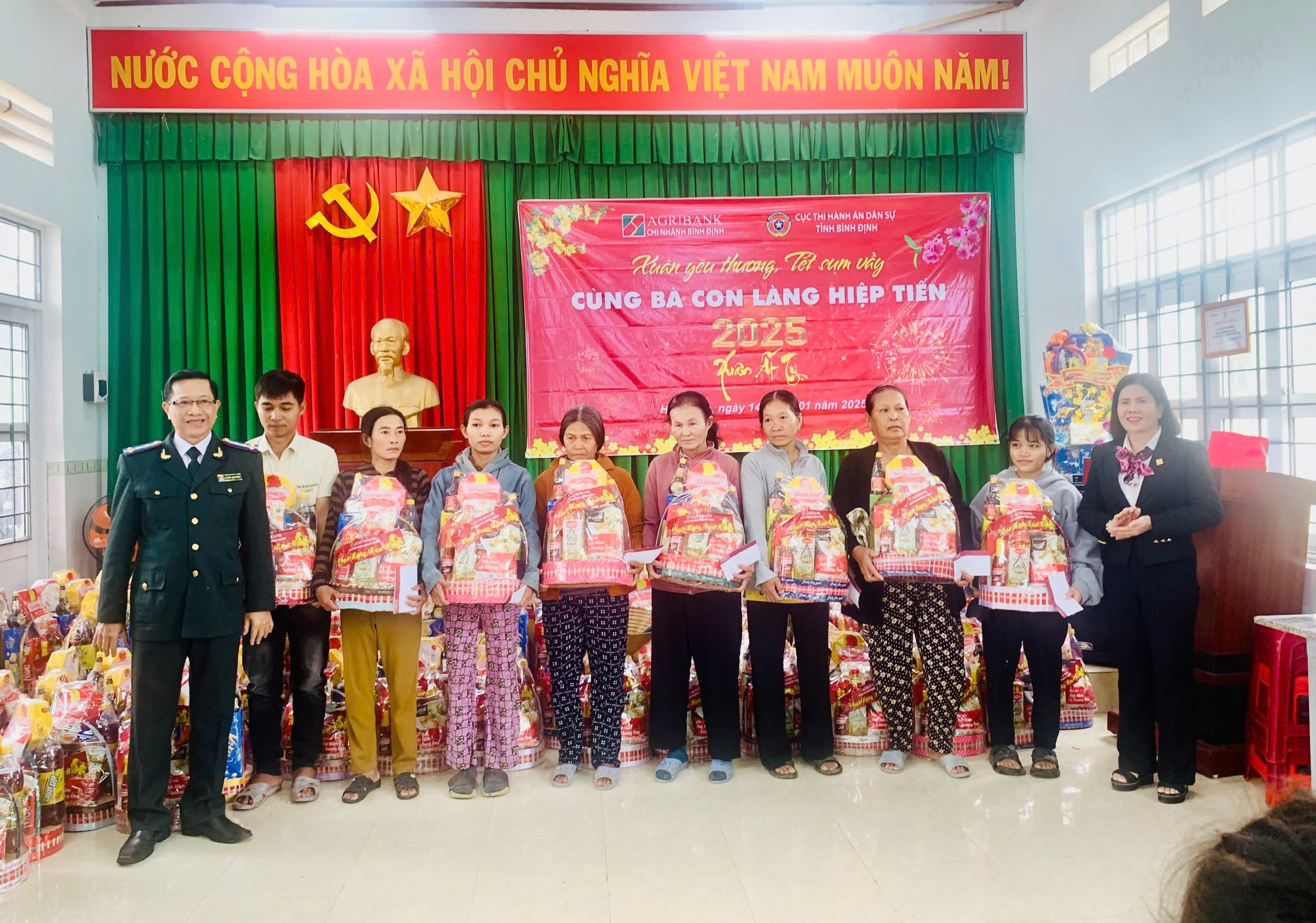 Sáng ngày 14/01/2025, trong không khí của những ngày cuối năm Giáp Thìn 2024, chuẩn bị đón xuân Ất Tỵ 2025, Cục Thi hành án dân sự (THADS) tỉnh phối hợp với Ngân hàng Nông nghiệp và Phát triển nông thôn Chi nhánh Bình Định đã thăm, tặng quà cho bà con nhân dân Làng Hiệp Tiến, xã Canh Hiệp, huyện Vân Canh, tỉnh Bình Định nhân dịp Tết cổ truyền dân tộc - Ất Tỵ năm 2025.