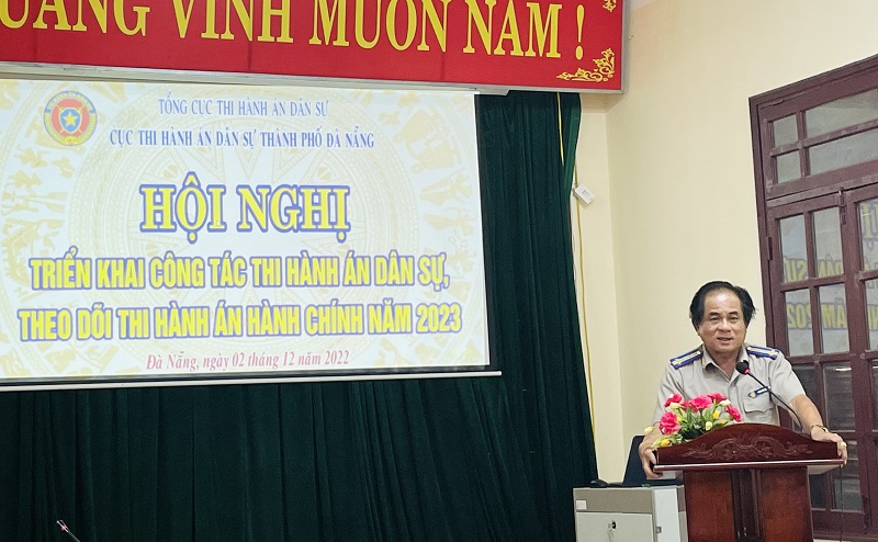 Chiều ngày 02/12/2022, Cục Thi hành án dân sự (THADS) thành phố Đà Nẵng tổ chức Hội nghị tổng kết công tác THADS, theo dõi thi hành án hành chính (THAHC) năm 2022; triển khai nhiệm vụ, công tác năm 2023. Dự và chỉ đạo Hội nghị có đồng chí Nguyễn Thắng Lợi – Phó Tổng cục trưởng Tổng cục THADS. Tham dự Hội nghị có đồng chí Phan Huy Hiếu,Chánh Văn phòng Tổng cục THADS; đồng chí Trần Thị Kim Oanh – Phó Ban Nội chính Thành uỷ; thành viên Ban chỉ đạo thi hành án dân sự thành phố; đại diện lãnh đạo Viện Kiểm sát nhân dân, Tòa án nhân dân và Công an thành phố; lãnh đạo Cục, lãnh đạo các phòng chuyên môn thuộc Cục, lãnh đạo Chi cục Thi hành án dân sự quận, huyện và Chấp hành viên, Thẩm tra viên Cục Thi hành án dân sự.