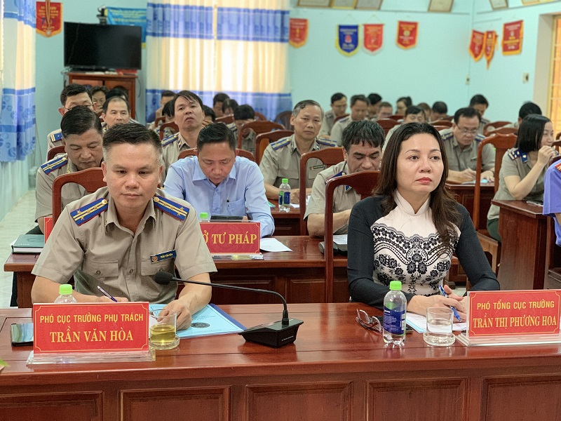 Đồng chí Trần Văn Hòa - Phó cục trưởng phụ trách thay mặt cơ quan THADS tỉnh Bình Phước cảm ơn và nghiêm túc tiếp thu ý kiến chỉ đạo của Phó Tổng cục trưởng. Đồng chí Trần Văn Hòa mong muốn luôn được lãnh đạo Tổng cục, cấp uỷ Đảng, chính quyền địa phương, Ban Chỉ đạo THADS quan tâm và tạo điều kiện để cơ quan thi hành án hoàn thành tốt nhiệm vụ. Ngoài ra, thời gian tới Cục thi hành án tỉnh sẽ tập trung chỉ đạo rà soát, khắc phục ngay những hạn chế đã được chỉ ra, tập trung thực hiện có hiệu quả các giải pháp và tăng cường công tác phối hợp trên địa bàn tỉnh, phấn đấu hoàn thành tốt các nhiệm vụ được giao năm 2023.