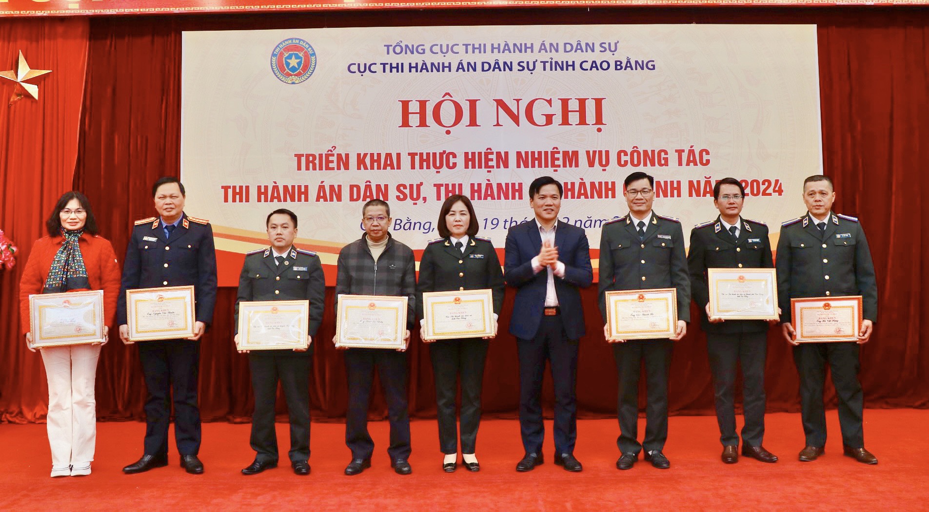 Thực hiện Kế hoạch số 1793/KH-CTHADS ngày 16/11/2023 của Cục Thi hành án dân sự (THADS) tỉnh Cao Bằng về việc tổ chức Hội nghị triển khai công tác THADS, thi hành án hành chính năm 2024, chiều ngày 19/12/2023 tại Hội trường tầng 2, Trung tâm Hội nghị tỉnh Cao Bằng, Cục THADS tổ chức Hội nghị triển khai thực hiện nhiệm vụ công tác thi hành án dân sự, thi hành án hành chính năm 2024.