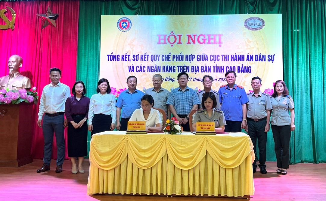 Cục Thi hành án dân sự tỉnh Cao Bằng và Ngân hàng Nhà nước Việt Nam chi nhánh tỉnh Cao Bằng tổ chức Hội nghị tổng kết, sơ kết Quy chế phối hợp giữa Cục Thi hành án dân sự và các Ngân hàng trên địa bàn.