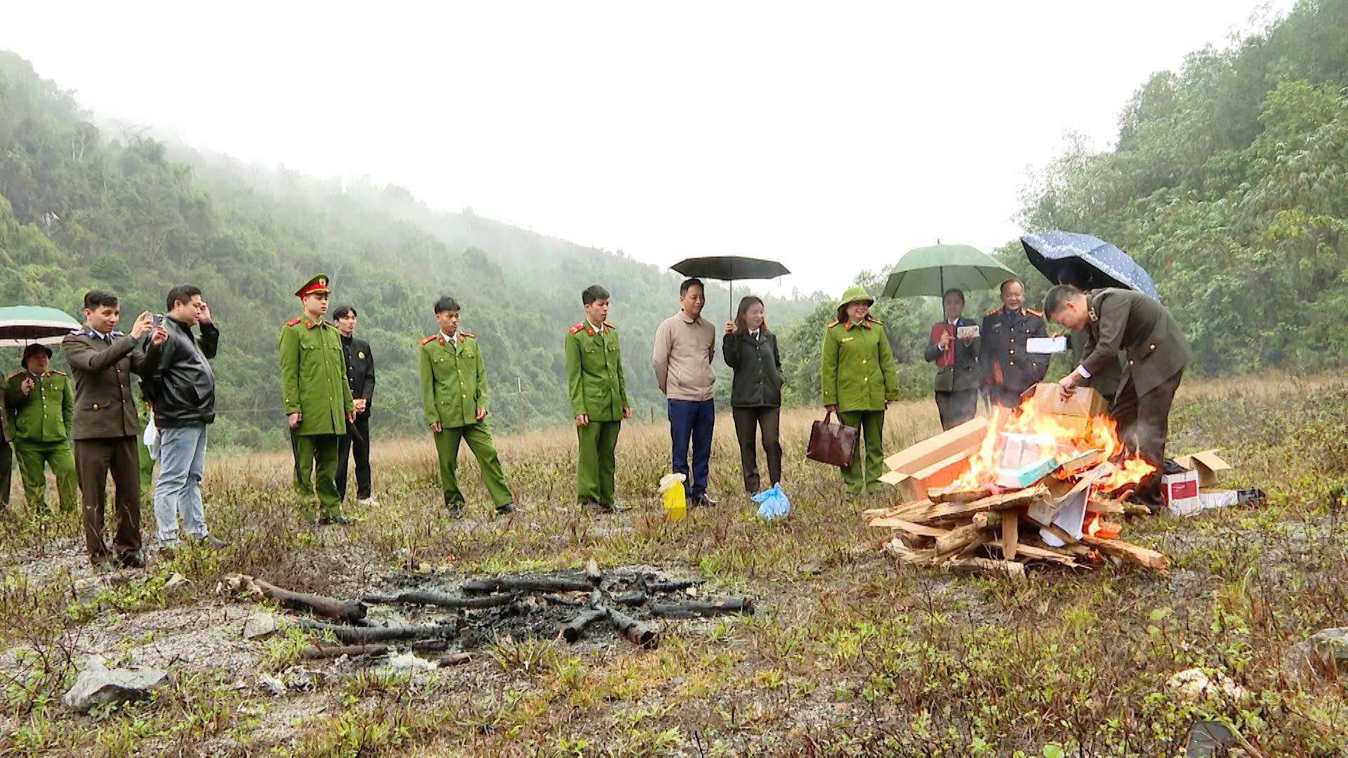 Sau khi tiến hành các thủ tục và công bố quyết định thành lập Hội đồng Tiêu huỷ vật chứng, tài sản và các quy định khác của pháp luật có liên quan, Hội đồng Tiêu hủy vật chứng đã tiến hành mở niêm phong tang vật là ma túy và thực hiện tiêu hủy tang vật bằng biện pháp đốt cháy hoàn toàn không còn khả năng sử dụng và không gây ô nhiễm môi trường, ảnh hưởng đến sức khỏe của người dân.