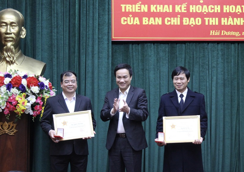 Nhân dịp này, các đồng chí Nguyễn Minh Hùng, Phó Chủ tịch UBND tỉnh, Phạm Văn Quang, Viện trưởng VKS nhân dân tỉnh và Chu Văn Tập nguyên Phó Viện trưởng VKS nhân dân tỉnh được trao tặng kỷ niệm chương Vì sự nghiệp tư pháp.
