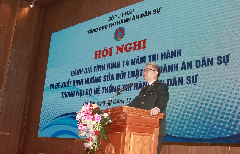 Để có cơ sở đánh giá toàn diện, chính xác tình hình kết quả 14 năm triển khai thi hành Luật Thi hành án dân sự, căn cứ Kế hoạch tổng kết Luật Thi hành án dân sự (được ban hành kèm theo Quyết định số 486/QĐ-TCTHADS ngày 14/6/2022 của Tổng cục trưởng Tổng cục Thi hành án dân sự), sáng ngày 20/12 Tổng cục Thi hành án dân sự đã tổ chức Hội nghị đánh giá tình hình 14 năm thi hành và đề xuất định hướng sửa đổi Luật Thi hành án dân sự trong nội bộ Hệ thống thi hành án dân sự (THADS).