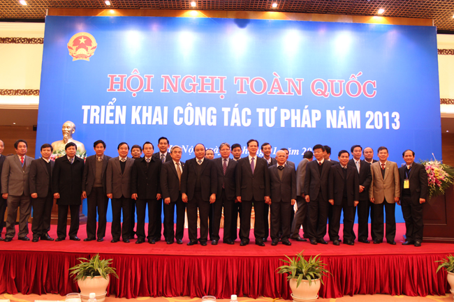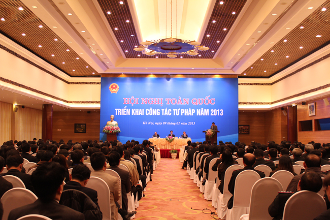 Sáng ngày 09/01, tại Hà Nội đã diễn ra Hội nghị toàn quốc triển khai công tác tư pháp năm 2013 với sự chủ trì của các đồng chí: Nguyễn Tấn Dũng, Uỷ viên Bộ Chính trị, Thủ tướng Chính Phủ; đồng chí Nguyễn Xuân Phúc, Uỷ viên Bộ Chính trị, Phó Thủ tướng Chính Phủ; đồng chí Hà Hùng Cường, Uỷ viên Trung ương Đảng, Bộ trưởng Bộ Tư pháp.