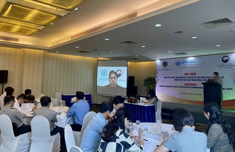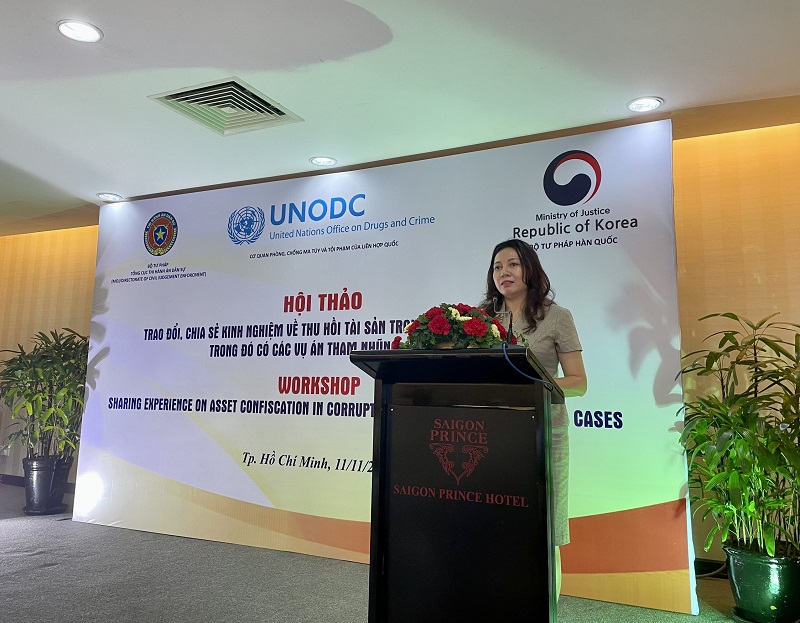 Được sự nhất trí của Lãnh đạo Bộ Tư pháp, ngày 11/11/2022, tại Thành phố Hồ Chí Minh, Tổng cục Thi hành án dân sự (THADS) phối hợp với Cơ quan Phòng, chống Ma túy và Tội phạm của Liên Hợp quốc (UNODC) tại Việt Nam tổ chức Hội thảo quốc tế trao đổi, chia sẻ kinh nghiệm về thu hồi tài sản trong các vụ án hình sự tham nhũng, kinh tế.