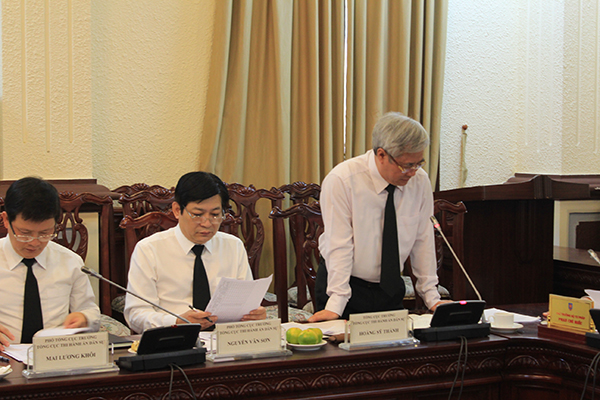 Cũng tại buổi làm việc này, nhấn mạnh đặc thù là cơ quan quản lý Hệ thống ngành dọc theo nguyên tắc tập trung thống nhất, đòi hỏi sự nhanh nhạy, hiệu lực, hiệu quả trong công tác chỉ đạo, điều hành, để tiếp túc triển khai thực hiện có hiệu quả các nhiệm vụ được giao, Tổng cục trưởng Hoàng Sỹ Thành đề nghị Bộ trưởng và các Đồng chí Thứ trưởng tiếp tục dành sự quan tâm, chỉ đạo sát sao, kịp thời đối với hoạt động THADS nói chung và Tổng cục nói riêng, nhất là trong lĩnh vực về thể chế THADS (đề xuất đưa Luật Đăng ký tài sản cũng như các quy định pháp luật về quản lý, kiểm soát tiền mặt và Luật Thi hành án hành chính vào Chương trình xây dựng Luật, Pháp lệnh của Quốc hội). Về cơ chế hoạt động cho phép nghiên cứu, quy định cụ thể hơn việc thực hiện một số cơ chế đặc tù hù hợp với yêu cầu hoạt động của Hệ thống về công tác chỉ đạo, điều hành, định kỳ mỗi năm đề nghị Ban cán sự Đảng dành 1-2 buổi thảo luận, đánh giá về tình hình, kết quả công tác THADS để trên cơ sở đó, kịp thời ban hành Nghị quyết chuyên đề lãnh đạo, chỉ đạo các lĩnh vực công tác THADS. Bên cạnh đó, Tổng cục trưởng cũng đề nghị Bộ trưởng cho phép xây dựng Quy chế phối hợp giữa Tổng cục với một số đơn vị có liên quan thuộc Bộ (Vụ Kế hoạch - Tài chính, Vụ Tổ chức cán bộ và Thanh tra Bộ Tư pháp) để bảo đảm sự phối hợp chặt chẽ, hiệu quả giữa các đơn vị thuộc Bộ trong công tác quản lý THADS.