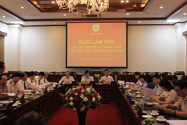 Chiều ngày 31/5/2016, Bộ trưởng Lê Thành Long đã có buổi làm việc với Tổng cục Thi hành án dân sự. Tham dự buổi làm việc có các Thứ trưởng: Phan Chí Hiếu, Trần Tiến Dũng; đại diện lãnh đạo một số đơn vị có liên quan thuộc Bộ (Vụ Tổ chức cán bộ, Thanh tra Bộ, Văn phòng Bộ, Cục Bổ trợ Tư pháp, Học viên Tư pháp, Cục Bồi thường Nhà nước, Vụ Hợp tác quốc tế); tập thể Lãnh đạo Tổng cục THADS và Lãnh đạo các đơn vị thuộc Tổng cục.