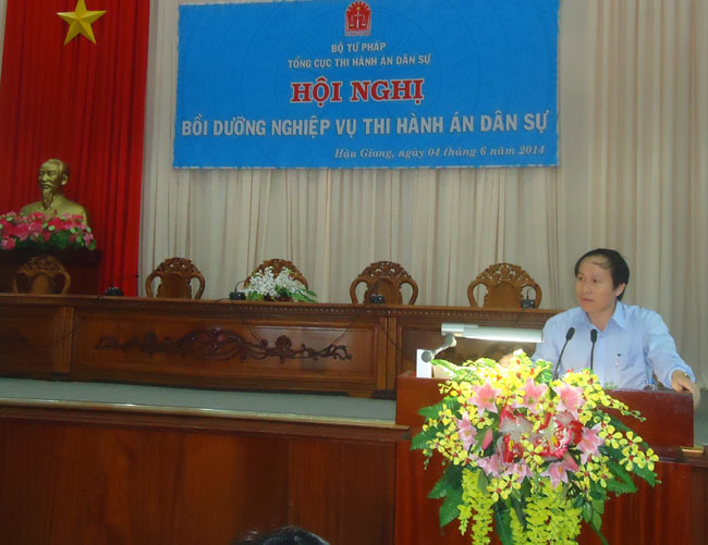 Thực hiện Quyết định số 419/QĐ-BTP ngày 24/02/2014 của Bộ trưởng Bộ Tư pháp về phê duyệt Kế hoạch đào tạo, bồi dưỡng cán bộ, công chức Ngành Tư pháp năm 2014, Quyết định số 1047/QĐ-BTP ngày 12/5/2014 của Bộ trưởng Bộ Tư pháp về phê duyệt Kế hoạch tổ chức lớp bồi dưỡng nghiệp vụ thi hành án dân sự, nhằm nâng cao nghiệp vụ chuyên môn cho cán bộ, công chức trong các cơ quan Thi hành án dân sự, tăng cường công tác phối hợp giữa cơ quan Thi hành án hình sự và cơ quan Thi hành án dân sự, góp phần đảm bảo thực hiện các chỉ tiêu, nhiệm vụ của cơ quan Thi hành án dân sự; Tổng cục Thi hành án dân sự phối hợp với Tổng cục Cảnh sát Thi hành án hình sự và hỗ trợ tư pháp - Bộ Công an tổ chức Hội nghị bồi dưỡng nghiệp vụ thi hành án dân sự. Hội nghị được tổ chức tại 03 miền: Miền Bắc được tổ chức tại Học viện Tư pháp, thành phố Hà Nội; miền Nam được tổ chức tại tỉnh Hậu Giang và miền Trung được tổ chức tại tỉnh Quảng Bình.