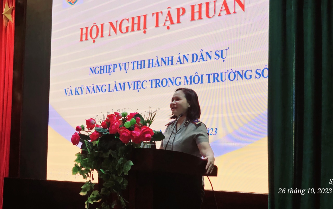 Chương trình tập huấn sẽ tập trung vào các nội dung: (i) Quán triệt, cập nhật, phổ biến những điểm mới của Thông tư số 04/2023/TT-BTP ngày 14/8/2023 của Bộ Tư pháp về một số thủ tục quản lý hành chính và biểu mẫu nghiệp vụ THADS (thay thế Thông tư số 01/2016, có hiệu lực từ ngày 01/10/2023) và hướng dẫn sử dụng biểu mẫu nghiệp vụ THADS theo quy định tại Thông tư này; (ii) Công tác thi hành quyết định của Tòa án về giải quyết phá sản; (iii) Công tác thu hồi tài sản trong các vụ án hình sự về tham nhũng, kinh tế cho các cơ quan THADS; (iv) Chính phủ điện tử, chính phủ số ngành Tư pháp - kỹ năng làm việc trong môi trường số.
