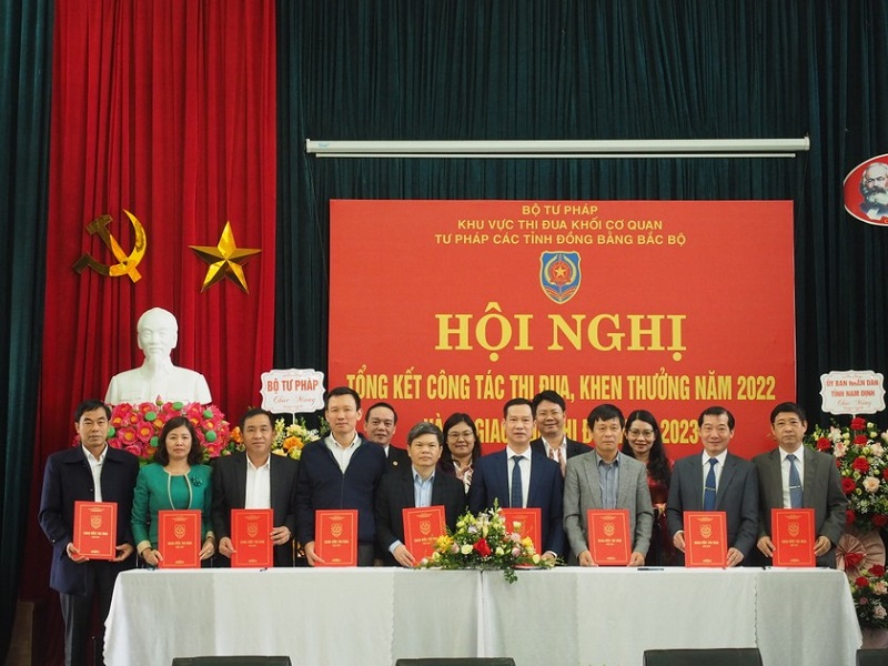 Tại Hội nghị, Khu vực thi đua khối các cơ quan tư pháp các tỉnh Đồng bằng Bắc Bộ nhất trí bỏ phiếu bình xét, suy tôn tập thể được tặng danh hiệu thi đua năm 2022; Tổ chức ký kết giao ước thi đua năm 2023; tặng hoa Cụm trưởng Khu vực khối các cơ quan tư pháp các tỉnh Đồng bằng Bắc Bộ năm 2023 cho Sở Tư pháp tỉnh Ninh Bình.