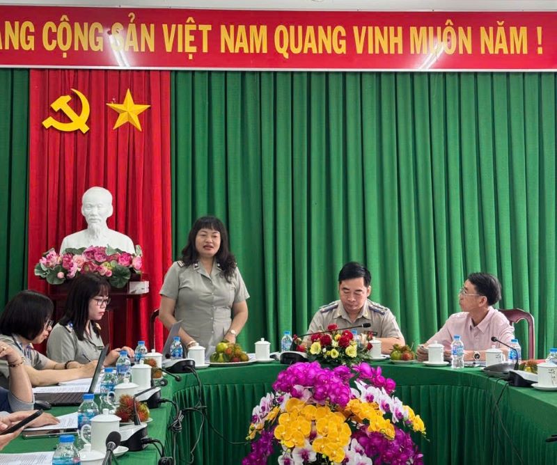 Tại buổi làm việc, sau khi đồng chí Trần Thị Lan Hương công bố Quyết định kiểm tra, Kế hoạch kiểm tra và một số yêu cầu phục vụ công tác kiểm tra, đồng chí Văn Hoàng Hải – Phó Cục trưởng Cục THADS tỉnh Vĩnh Long đã trình bày Báo cáo các nội dung kiểm tra theo Kế hoạch. Thành viên Đoàn kiểm tra cũng đã có ý kiến trao đổi, đề nghị làm rõ một số nội dung của Báo cáo cũng như yêu cầu cung cấp các hồ sơ, tài liệu, sổ sách để phục vụ hoạt động kiểm tra.